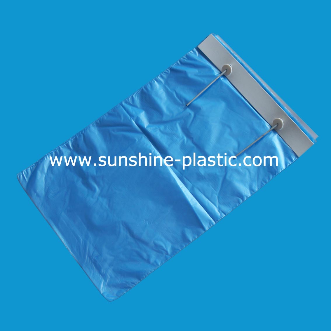 Heat side sealed wicketted bag with metal wicket on blocked header.