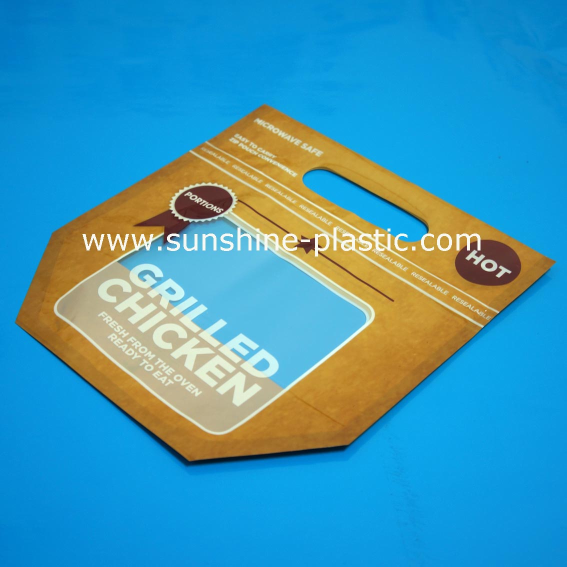 袋型:三边热封K型袋,宽边封线,开口有凹凸条可以开合,底部有斜边插角。